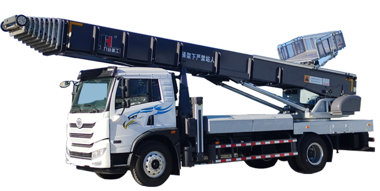 36米云梯車可傳送 400kg 重的貨物,用于高度小于36 米的高空裝卸作業。該云梯車主要由車架總成、云梯總成、小車總成、轉臺總成、卷揚機總成、液壓系統總成、電氣系統總成等組成。傳送貨物時,4 個液壓支撐伸出,加強了整機的穩定性。 該云梯車,采用一汽解放底盤,整車重量控制在4.5噸以內,掛藍牌,C1駕照就可駕駛,免購置稅,不需要操作證,非營運車輛,使用期限30 年。